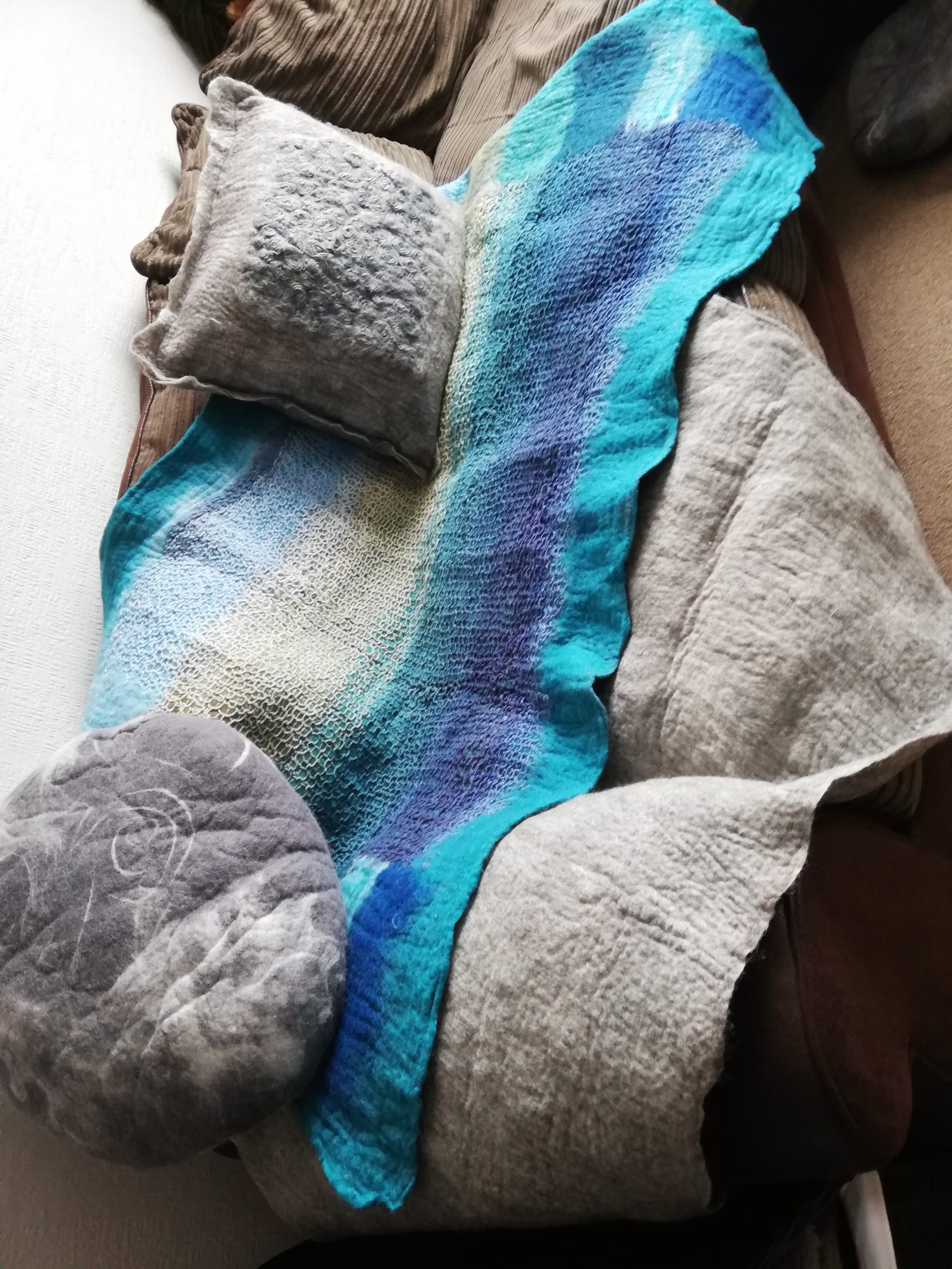 My Coastal wet felt collection draws its inspiration from the serene beauty of the North and South coast. The untouched sands, vibrant wildflowers and rocky pebbles encapsulate the essence of a perfect Cornish beach day. Each piece in this collection reflects the harmonious beauty of sea, sand and natural splendour, with colours and textures that evoke the soothing rhythm of the ocean and the gentle grounding from the rocks and pebbles. Through my wet felt art, I aim to bring the tranquil and enchanting spirit of the Cornish coastline into your home, capturing the essence of Cornwalls expansive rugged landscape.